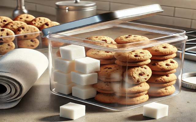 각설탕 2~3개를 과자 봉지에 넣고 밀봉합니다. 각설탕이 과자의 수분을 흡수하여 바삭함을 유지시켜 줍니다.
