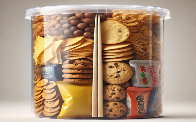 나무젓가락을 과자 봉지에 넣고 밀봉합니다. 나무젓가락이 과자의 수분을 흡수해 바삭함을 유지합니다.