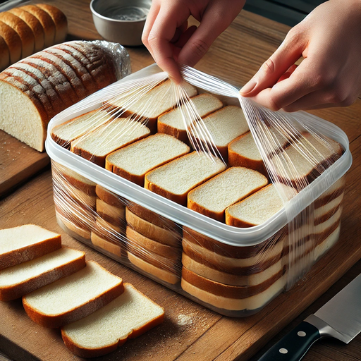 식빵들을 밀폐 용기에 넣거나 랩으로 잘 감싸 밀봉해 주세요. 이렇게 하면 수분이 증발하지 않도록 도와줍니다.