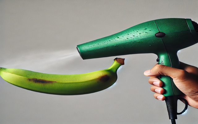 조금 번거로울 수 있지만, 바나나에 따뜻한 드라이기 바람을 쐬어주면 빠르게 후숙 시킬 수 있습니다. 이 방법은 바나나가 아주 빨리 필요할 때 유용할 수 있지만, 바람을 너무 뜨겁게 하면 바나나가 익기 전에 말라버릴 수 있으니 주의가 필요합니다.