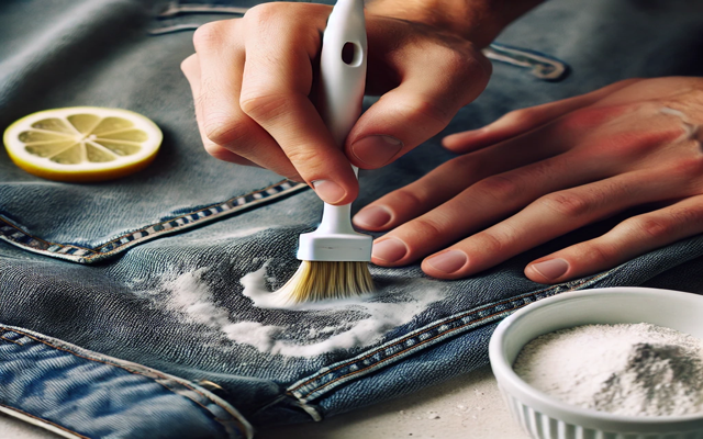 베이킹소다와 레몬즙을 섞어 묽은 반죽을 만들어주세요. 이를 얼룩 부위에 바르고 일정 시간 방치한 후 세탁하면 잉크 얼룩이 깨끗하게 제거됩니다. 레몬의 산성과 베이킹소다의 알칼리성 반응이 얼룩 제거에 효과적이에요.