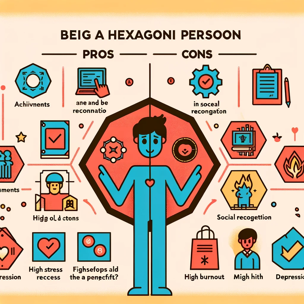 육각형 인간이 되는 것은 많은 장점을 가질 수 있습니다. 다양한 분야에서 뛰어난 성과를 내며, 사회적 인정과 성공을 얻을 수 있습니다. 그러나 이러한 완벽주의는 큰 스트레스를 유발할 수 있으며, 자칫하면 번아웃이나 우울증 등의 정신적 문제를 야기할 수 있습니다. 따라서 완벽함을 추구하되, 자신의 한계를 인식하고 무리하지 않는 것이 중요합니다.