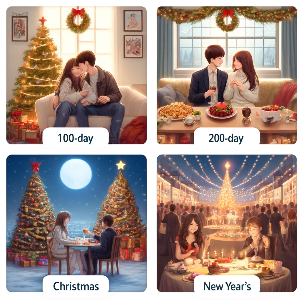 6월 9일, 9월 17일, 9월 24일은 각각 크리스마스와 새해를 더욱 특별하게 만들어주는 날들입니다. 이 특별한 날들에 연애를 시작하여 다가오는 기념일들을 함께 축하하며, 더욱 깊은 사랑을 나누는 여러분이 되시길 바랍니다. 여러분의 연애가 항상 행복하고 특별한 추억으로 가득하길 바랄게요.